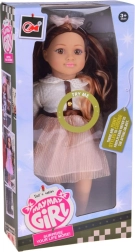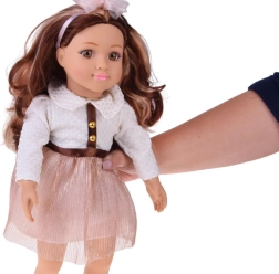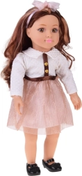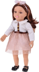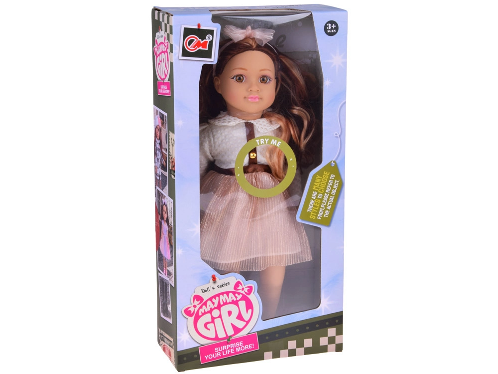 La encantadora muñeca MAY MAY GIRL destaca por su combinación de detalles realistas y acabados de calidad. La camiseta blanca texturizada con botones dorados, la falda rosa brillante con cinturón y la diadema con lazo conforman un conjunto de moda elegante que estimula la imaginación y el cambio de vestuario con estilo.