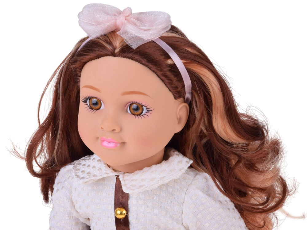 El cabello denso y suave se puede peinar, trenzar y adornar con la diadema con lazo: ideal para pequeñas estilistas y un peinado creativo.