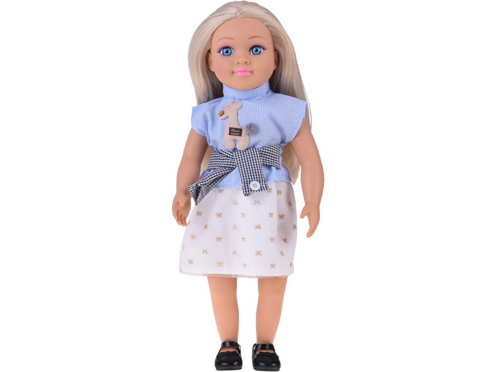 Descubre el encanto de una clásica muñeca de moda que combina elegancia, calidad y diversión. Gracias a su largo cabello rubio es perfecta para peinar y crear peinados, mientras que sus grandes ojos azules y su suave sonrisa le dan una expresión encantadora. El cuerpo suave y las piezas de plástico de calidad garantizan un manejo cómodo y resistencia para el juego diario.