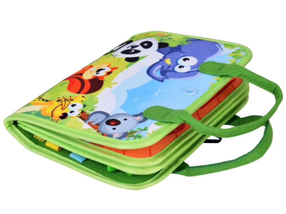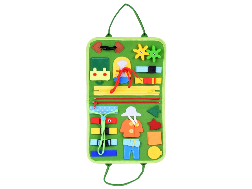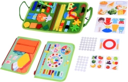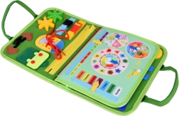Este libro creativo desarrolla las habilidades de los niños a través del juego significativo. En su interior encontrarás páginas blandas desmontables con cremalleras, hebillas, botones, cordones, formas con velcro y elementos educativos como reloj con manecillas giratorias, días de la semana, clima y calendario. Los niños ejercitan la coordinación ojo–mano y el pensamiento lógico.