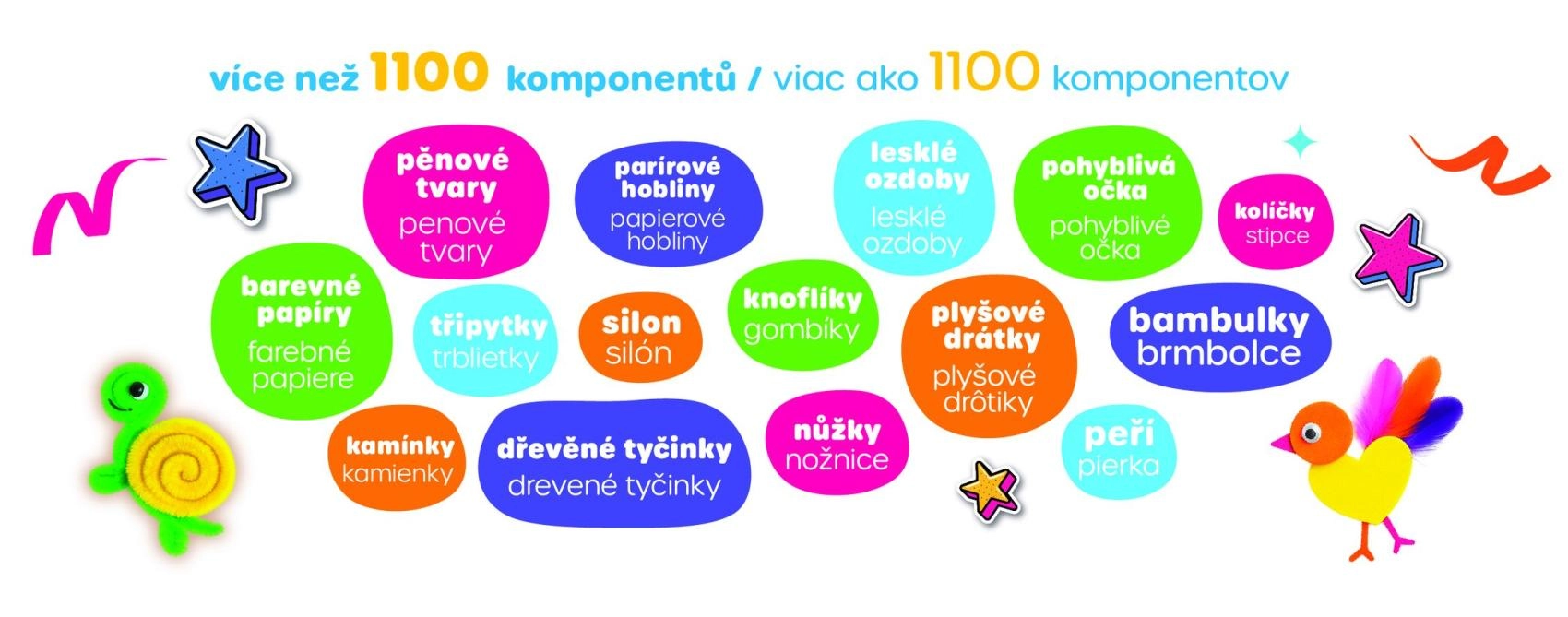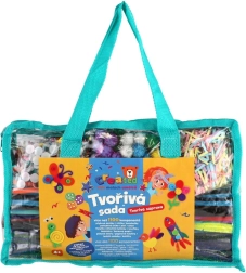 Este colorido set creativo estimula la imaginación infantil y la motricidad fina. Gracias a la amplia combinación de componentes —como limpiapipas, pompones, formas de espuma, cuentas, plumas y pegatinas— los niños pueden realizar proyectos sencillos y también más complejos según su ánimo.