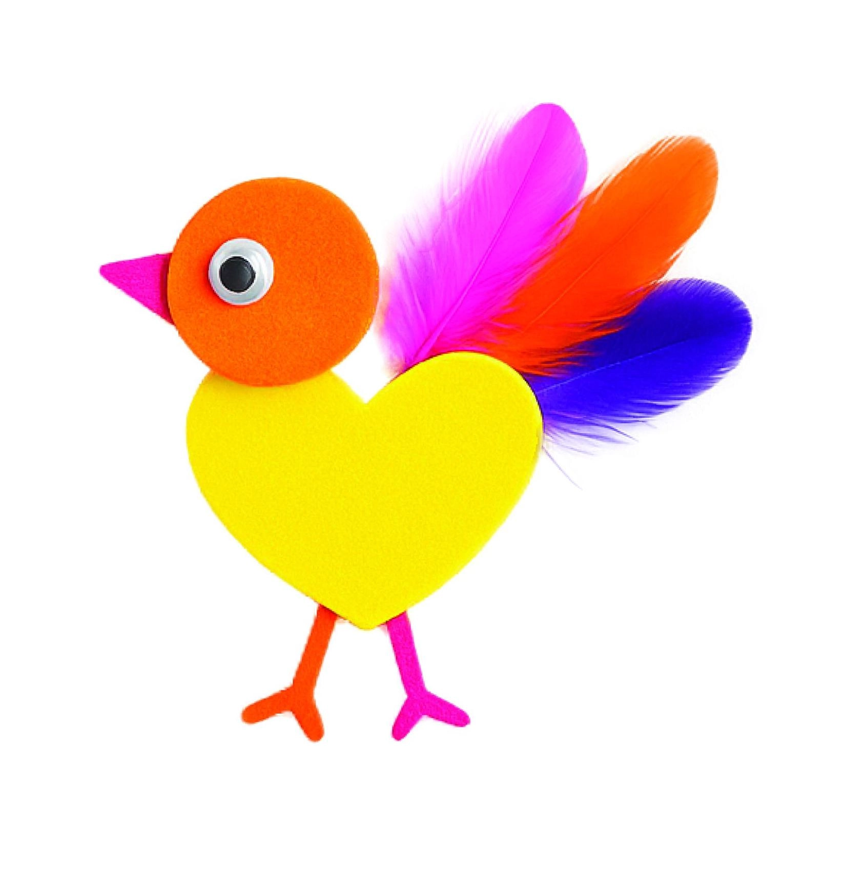 Con formas de espuma de colores y plumitas, surgirán fácilmente pajaritos alegres, mariposas y otras figuritas: ideal para desarrollar la motricidad fina y la paciencia.