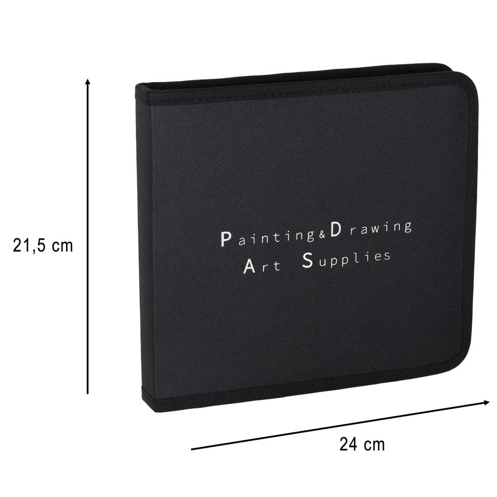 El estuche de nailon resistente mantiene todo organizado en su sitio y el bloc A5 con 20 hojas está listo para las ideas en cualquier momento.