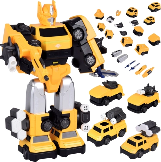 Este futurista transformer magnético destaca por su llamativa combinación de colores amarillo y negro y su construcción robusta. Gracias a los conectores magnéticos potentes, los niños transforman el robot rápidamente y crean sus propias escenas heroicas. La iluminación LED en la parte inferior aporta una atmósfera realista a la acción.