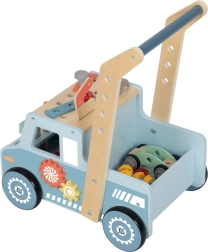 Este ingenioso andador con forma de camión azul es el ayudante ideal para los primeros pasos y, a la vez, un divertido taller STEM. La estructura de madera robusta aporta estabilidad, mientras que los engranajes giratorios, transmisiones y placas de montaje invitan a descubrir los principios de la mecánica y a desarrollar la coordinación.