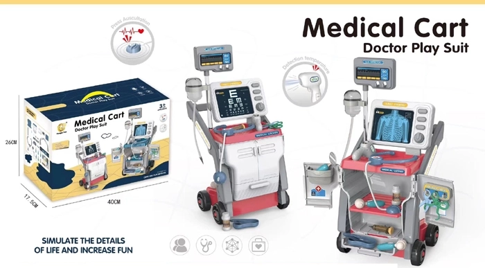 Este carrito médico rosa proporcionará a los niños todo lo que necesitan para jugar a la consulta. Gracias a los efectos de sonido, el juego es aún más realista y estimula la imaginación y las habilidades sociales. El set está fabricado en plástico de alta calidad y es adecuado para niños a partir de 3 años.