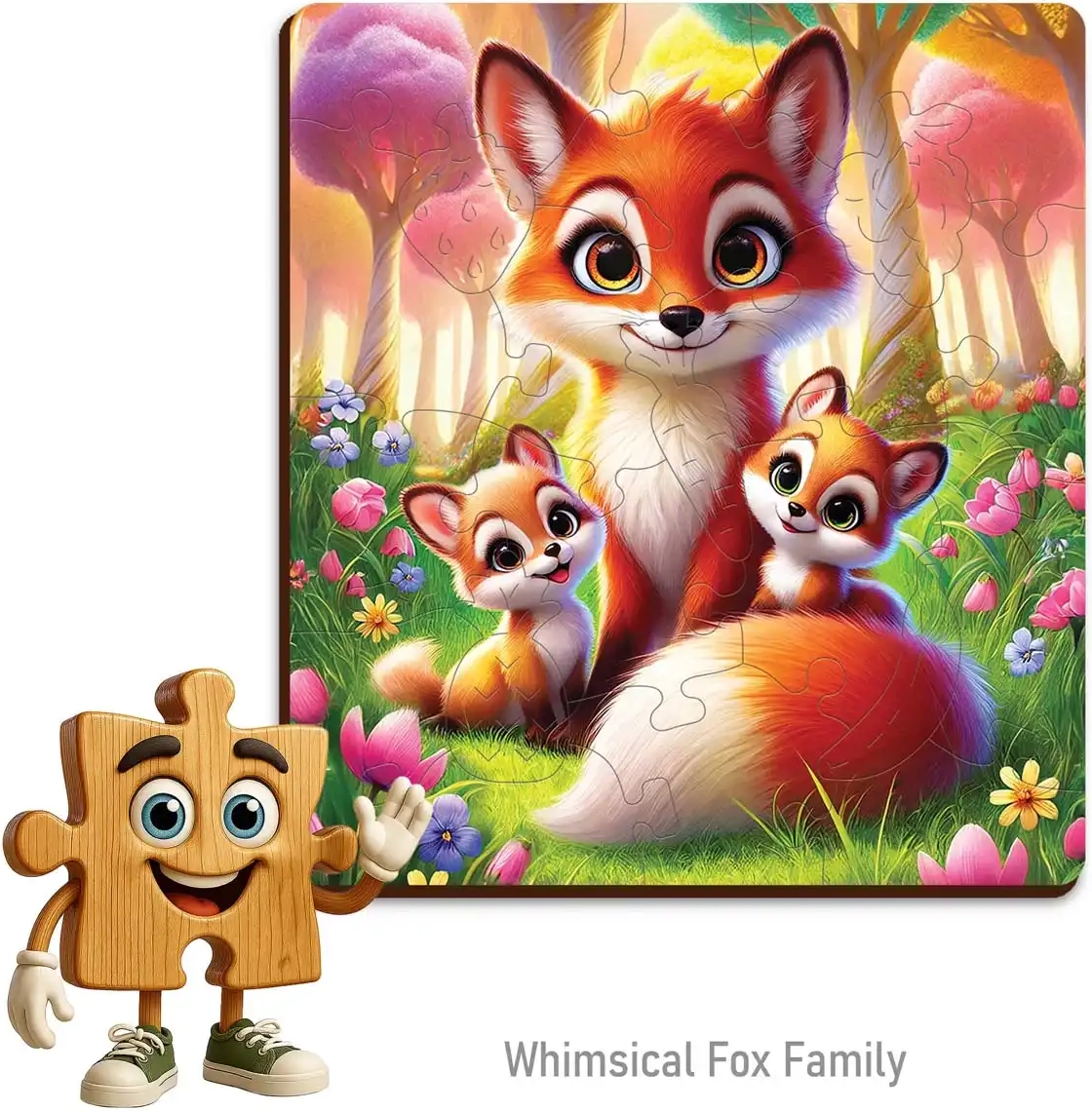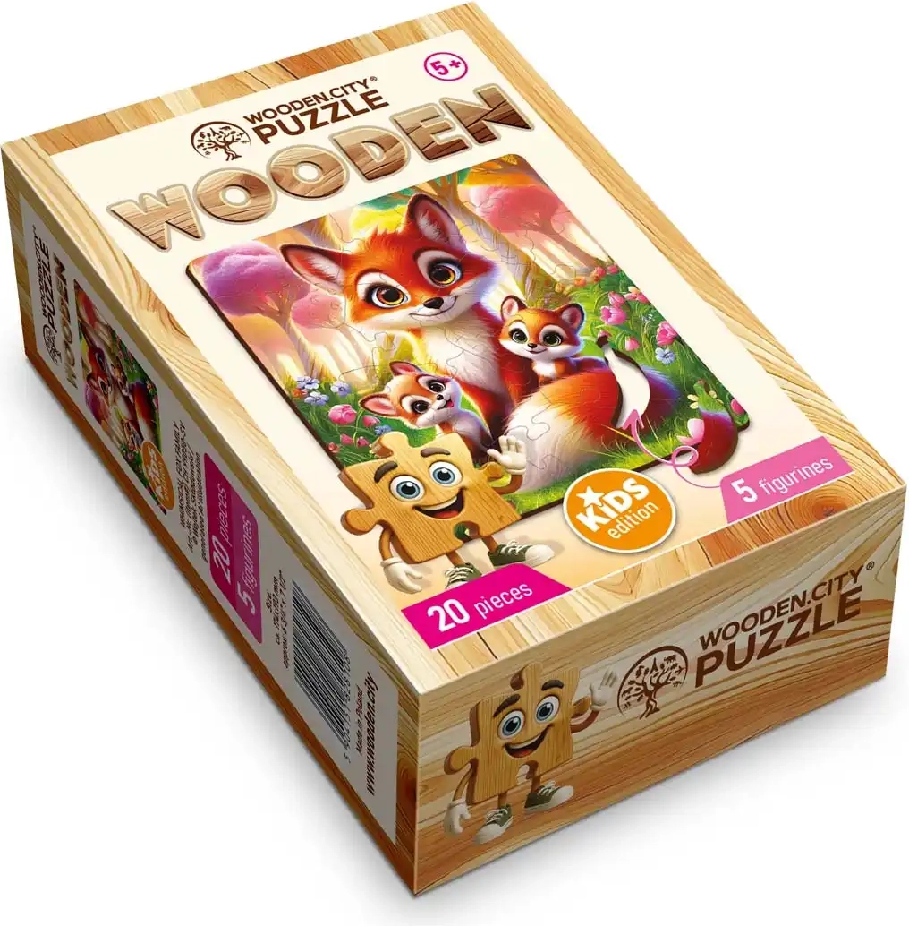 Descubre la magia de armar con los rompecabezas de madera WOODEN CITY. Esta adorable familia de zorros de 20 piezas ofrece a los niños diversión y aprendizaje a la vez. 5 piezas con formas únicas, acabado láser de precisión y bordes lisos y seguros garantizan un montaje cómodo y seguro. El paquete incluye una plantilla independiente para facilitar los comienzos.