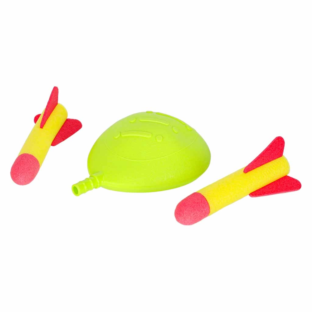 - 4 actividades en 1 set: saltar el obstáculo, lanzar con precisión a cestas y a aros, y emocionante lanzamiento de cohetes.
