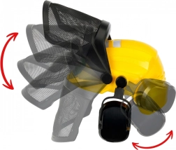 - Accesorios de seguridad – casco ajustable con visera protectora abatible y protectores auditivos.