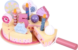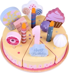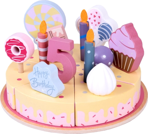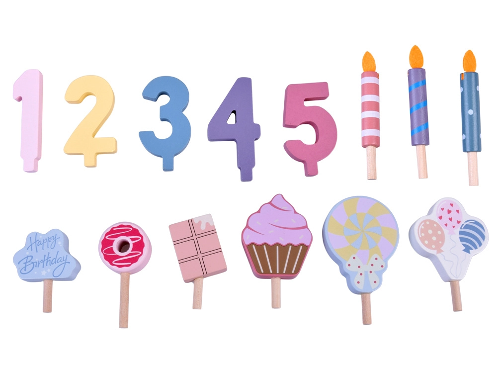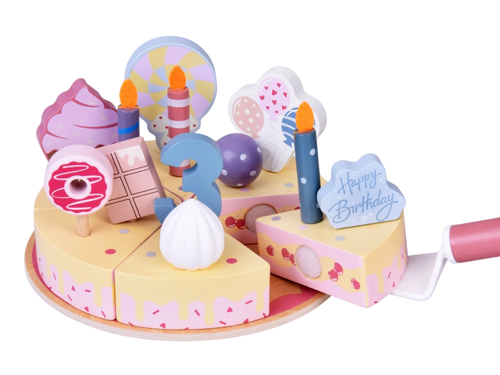 Una encantadora tarta de cumpleaños de madera para cortar convierte cualquier juego en una fiesta. Los niños disfrutarán de decoración creativa, cortar en porciones y servir. Madera suavemente lijada, pinturas no tóxicas y accesorios coloridos (velas, números 1–5, dulces, letrero Happy Birthday) fomentan la motricidad fina, la imaginación y el juego de roles.