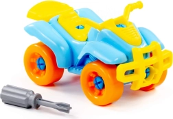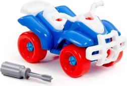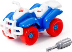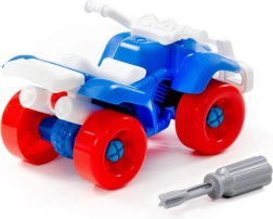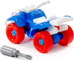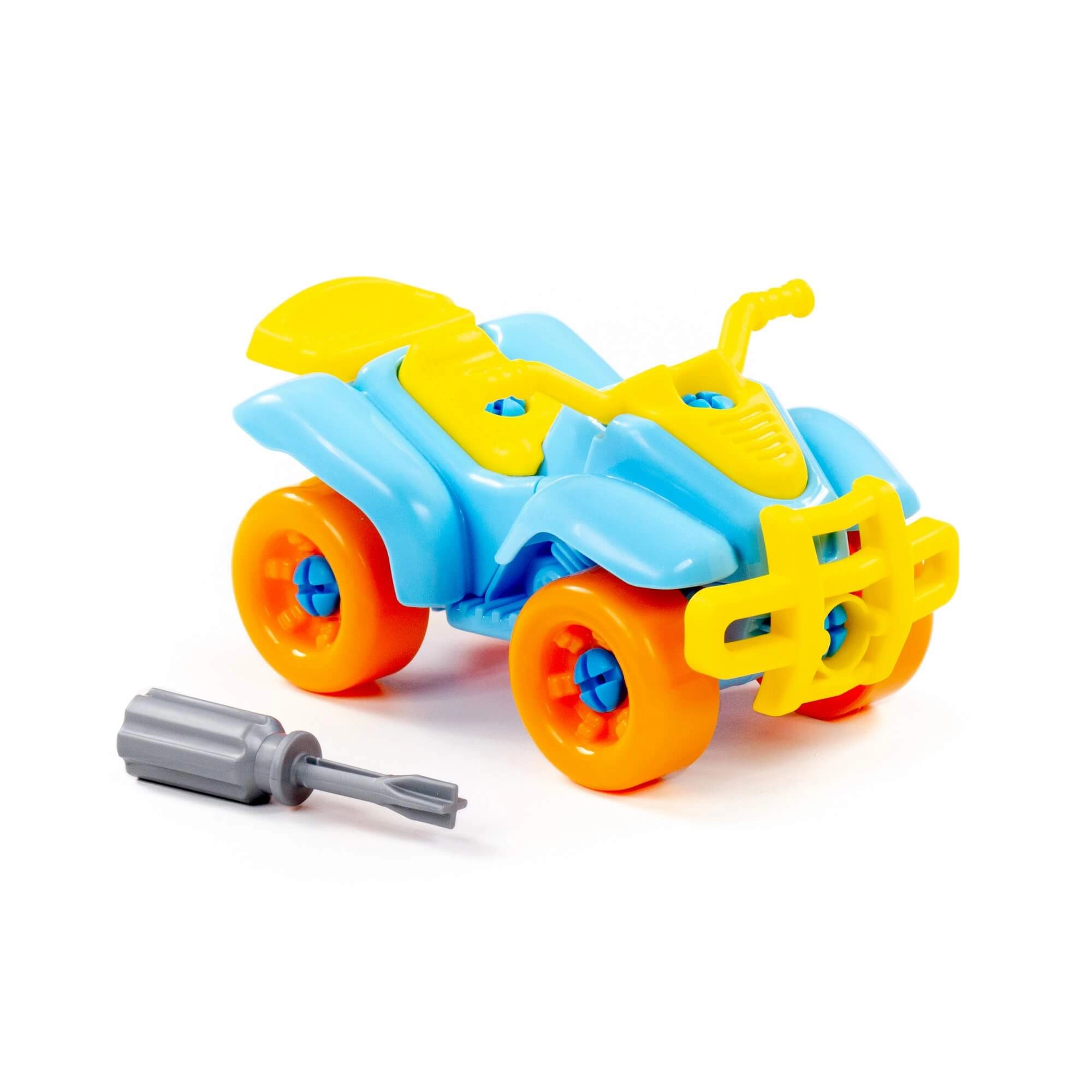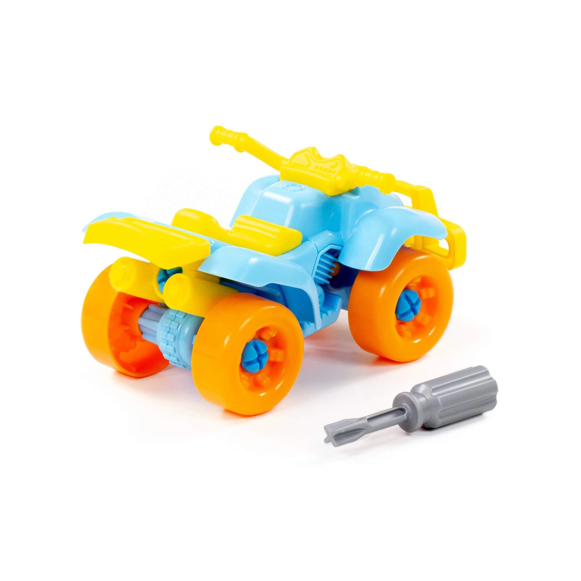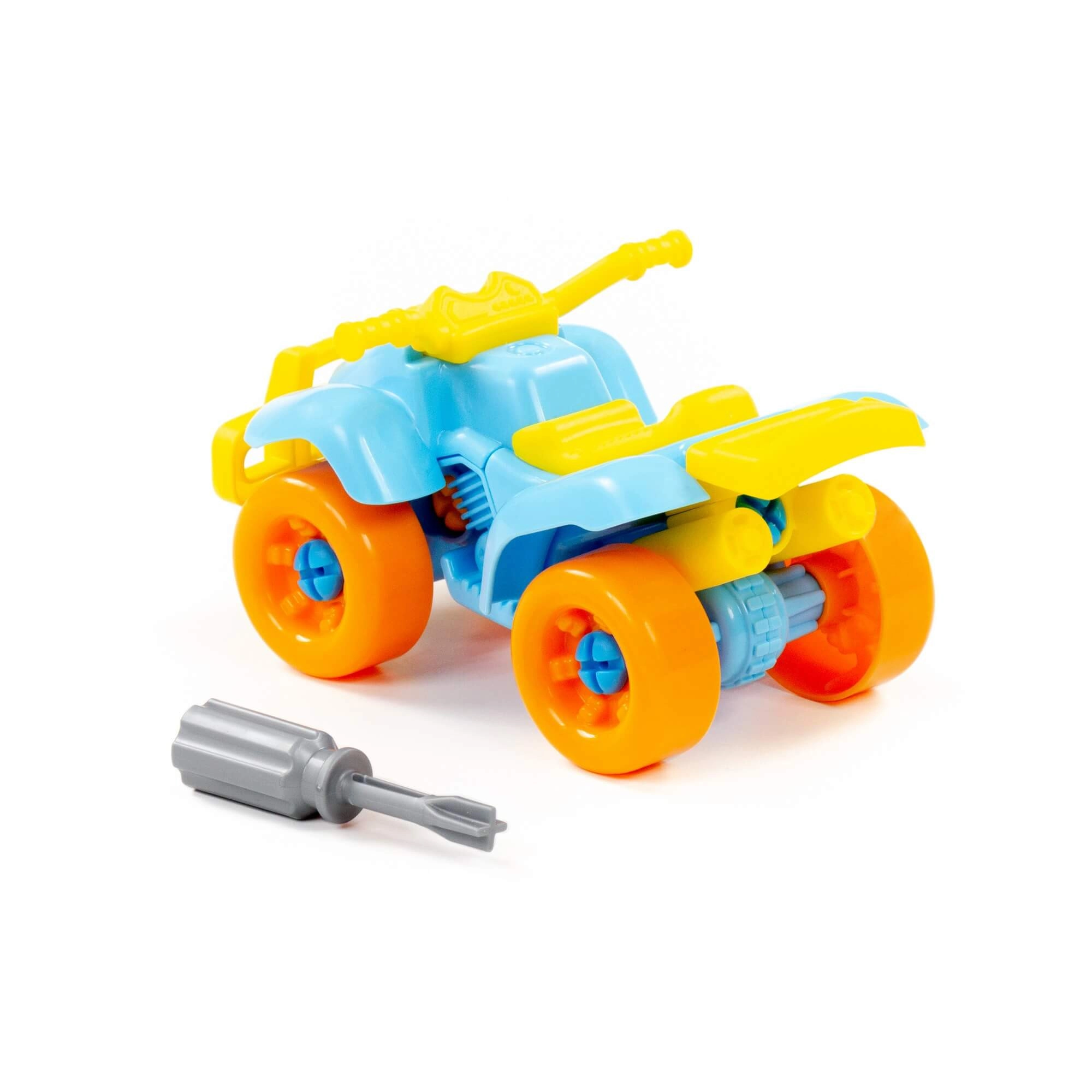 Este divertido quad atornillable es ideal para niños curiosos a los que les encanta explorar y construir. Las piezas son lo suficientemente grandes y diferenciadas por colores para facilitar su manipulación. El paquete incluye un destornillador infantil con el que los niños pueden desmontar y volver a montar el vehículo, entrenando de forma lúdica la coordinación mano-ojo y la concentración.