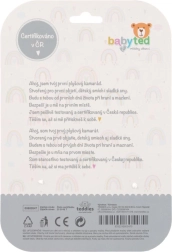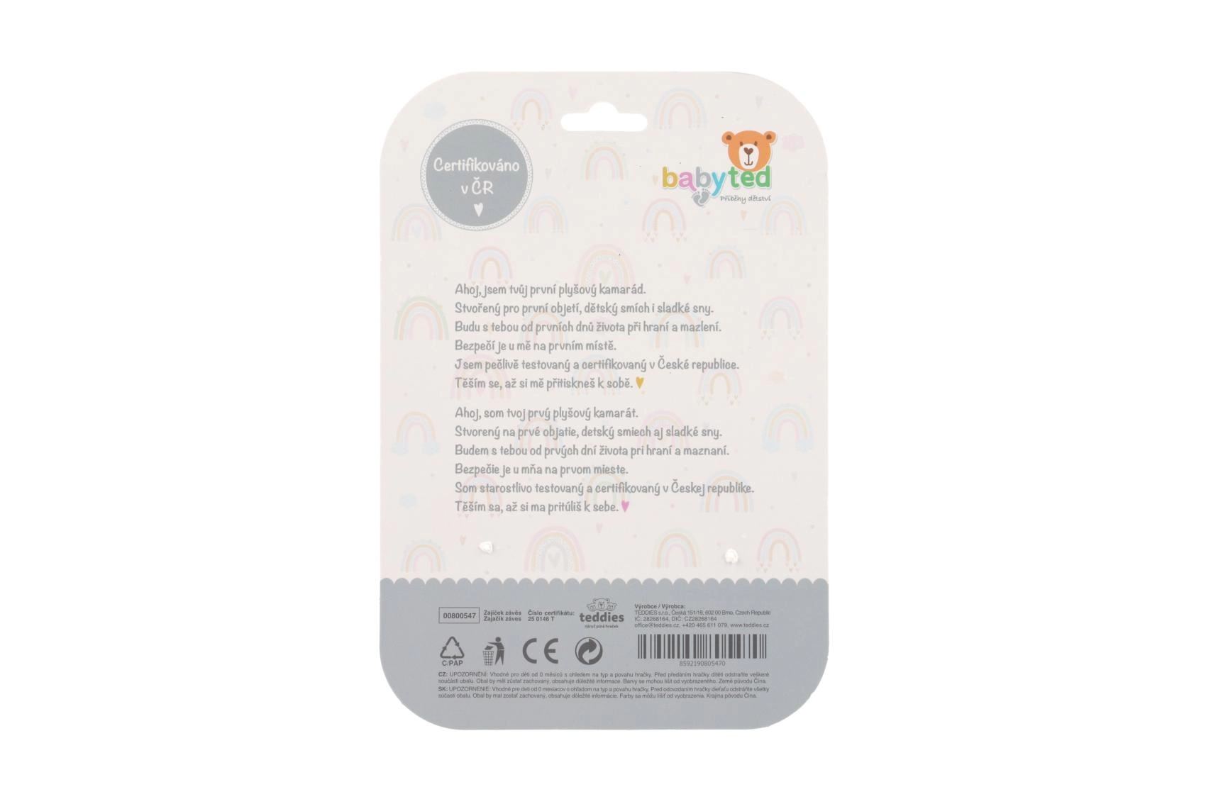 Al final de sus patitas encontrarás formas plásticas seguras —una estrella y una flor—. Funcionan como mordedores y ayudan a ejercitar el agarre y la coordinación manual. El juguete está certificado en la República Checa y es apto para niños desde el nacimiento.