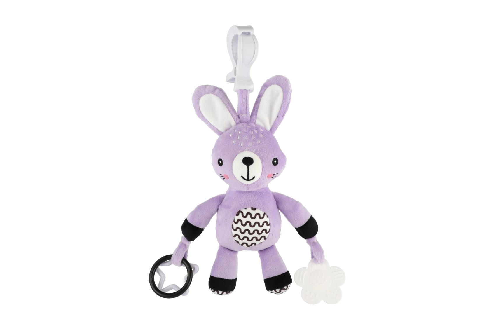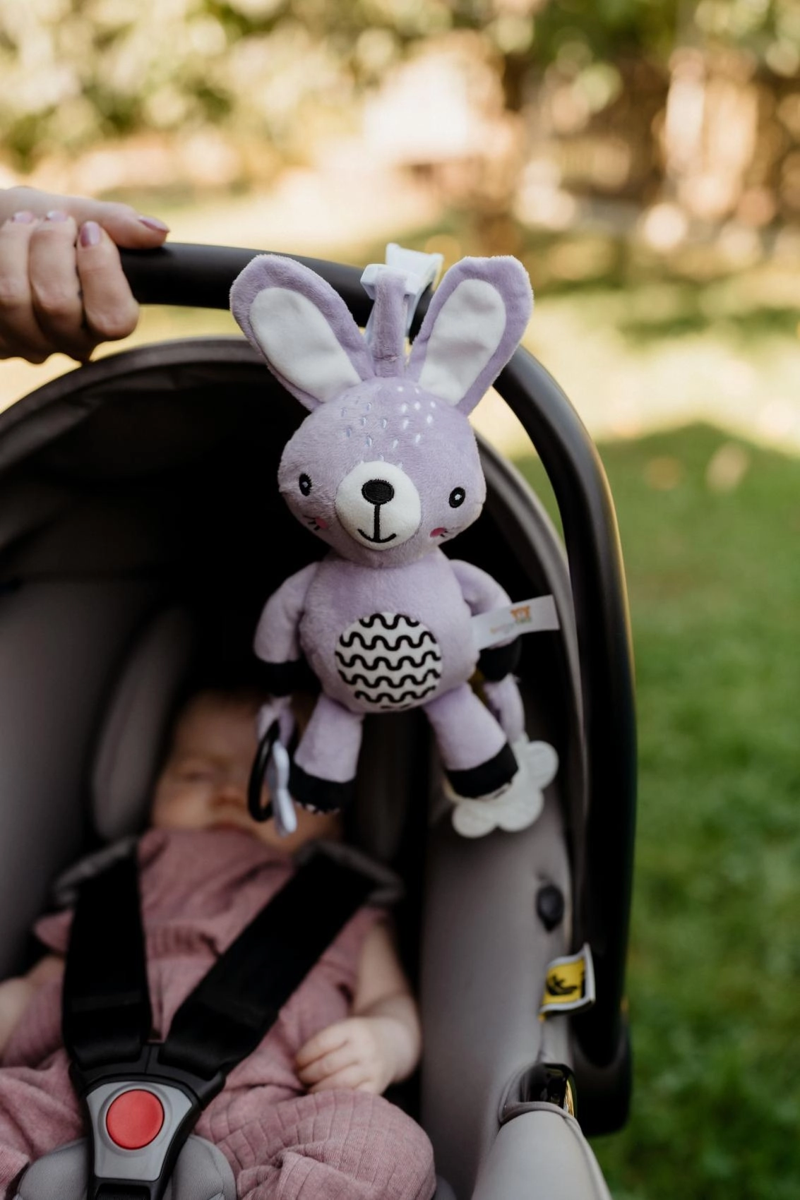 Adorable conejito de peluche para bebés desde 0 meses con práctico clip para cochecito, silla de auto o cuna. Ofrece suave sonido de sonajero, material muy suave y mordedores seguros para apoyar los sentidos y la motricidad fina. La certificación en la República Checa garantiza la seguridad para los más pequeños.