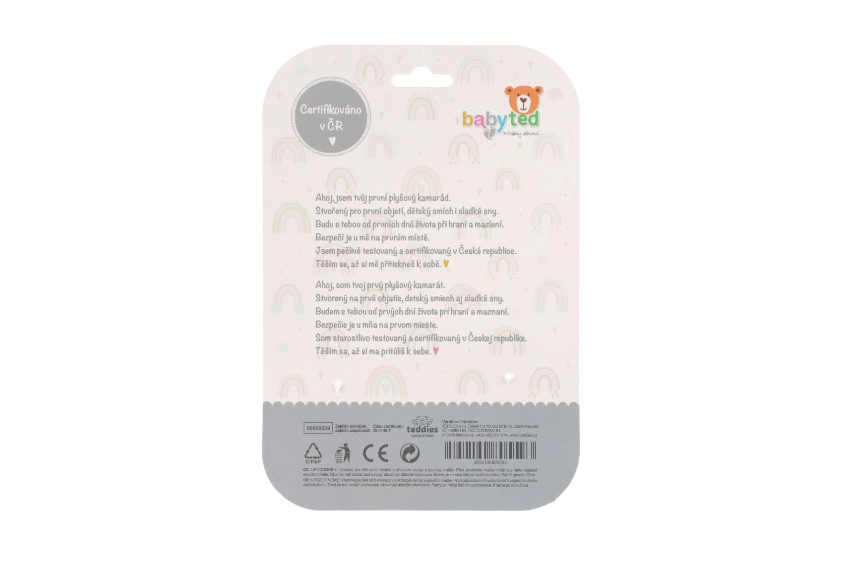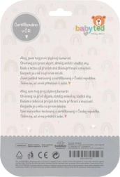 En su interior esconde un sonajero suave para el desarrollo auditivo, en una esquina un mordedor de silicona blando que alivia las encías doloridas y en las esquinas nuditos que favorecen la motricidad fina. El práctico tamaño de 25 × 25 cm es ideal para la cuna, el cochecito y la silla de coche.