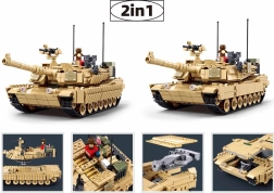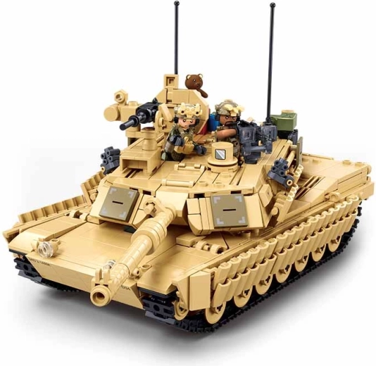 Construye el icónico tanque de batalla principal estadounidense M1A2 Abrams TUSK II a escala realista 1:35. El set de Sluban Model Bricks ofrece 988 piezas de resistente ABS, opción de construcción 2en1, torreta giratoria, cañón elevable y orugas funcionales. Incluye también minifiguras de soldados con equipamiento y compatibilidad con LEGO y otros sistemas.