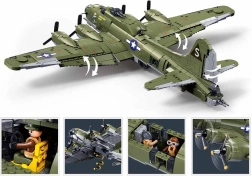 Construye la leyenda de la Segunda Guerra Mundial: el bombardero pesado estadounidense B-17G Flying Fortress a escala 1:44. El set de SLUBAN ofrece 1270 piezas de resistente ABS, fuselaje, alas y cabina detallados, elementos móviles incluido tren de aterrizaje retráctil y hélices giratorias, 3 minifiguras de la tripulación y un soporte de exhibición. Compatible con LEGO y otras marcas.