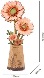 Monta una elegante gerbera naranja a partir de piezas de madera cortadas con precisión por láser. El modelo fomenta la motricidad fina, el pensamiento espacial y la paciencia. Las piezas están numeradas, no necesitan pegamento y encajan firmemente al presionarlas. Incluye instrucciones ilustradas; se monta en unos 30 minutos.