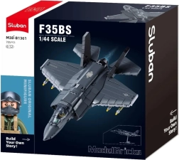 Sluban Model Bricks F-35B es un set realista inspirado en el avión polivalente de quinta generación. Reproduce fielmente la forma del fuselaje, las alas y la cabina detallada con cubierta transparente. Gracias a los elementos móviles, puedes colocar fácilmente el modelo en posición de vuelo o aterrizaje, aumentando su valor de juego y de colección.
