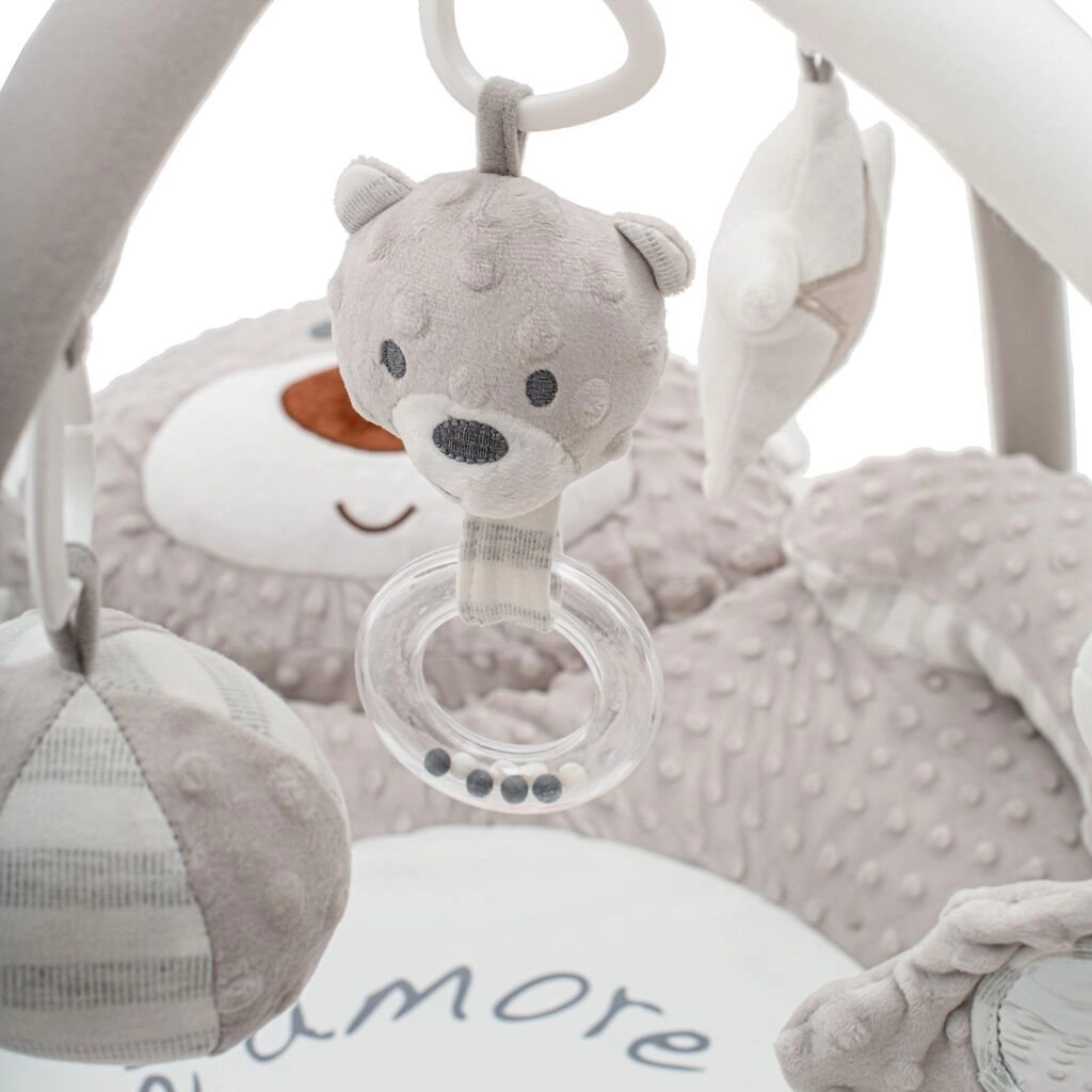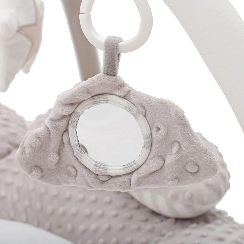 Esta lujosa manta de juego de suave tela minky con relieves crea un entorno acogedor y seguro para tu bebé. Los patrones de alto contraste, las texturas variadas y los elementos interactivos fomentan el desarrollo de la visión, el tacto, la coordinación y la motricidad fina. El arco integrado con juguetes desmontables motiva al niño a estirarse, agarrar y girar.