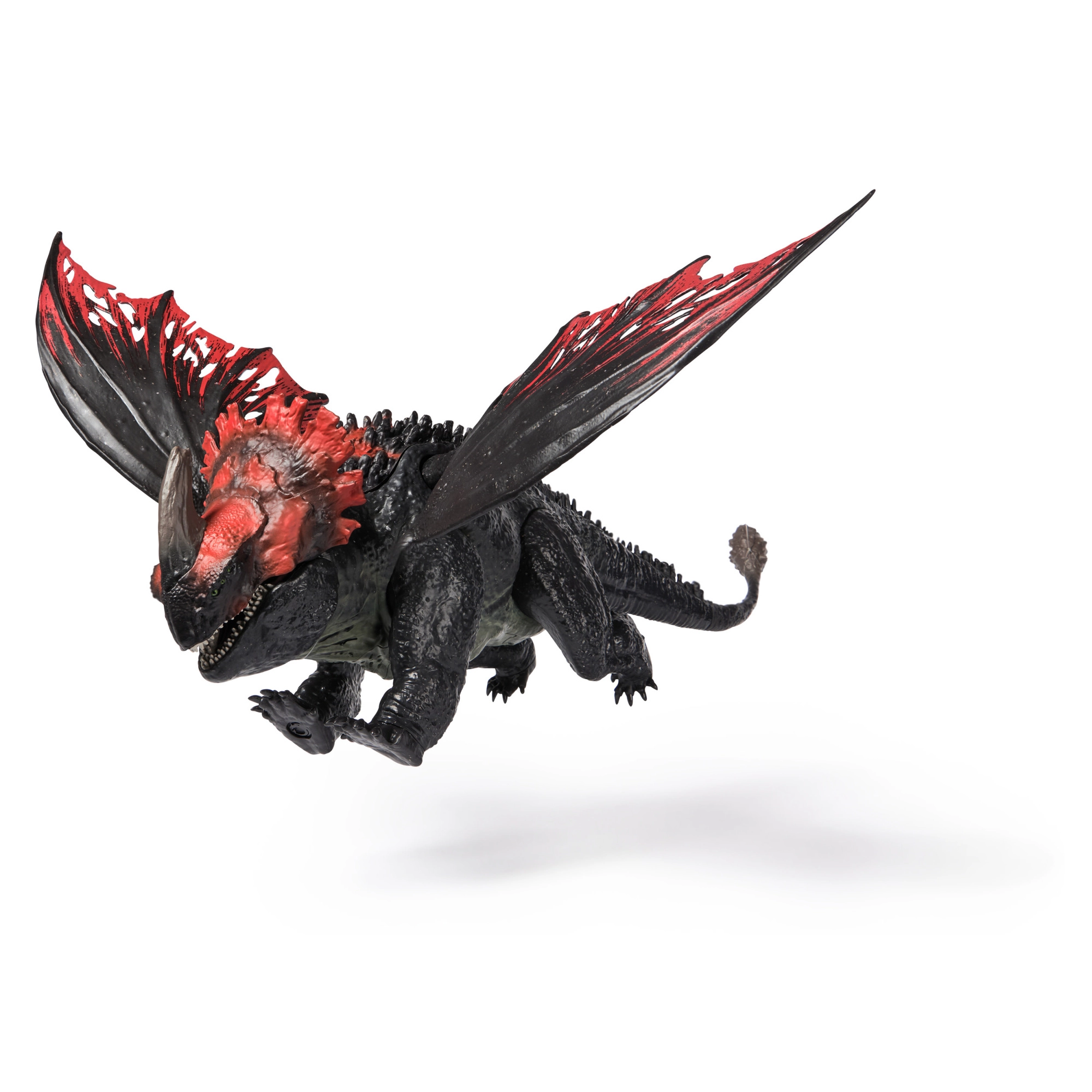 La enorme figura del dragón Titan Red Death de la película CÓMO ENTRENAR A TU DRAGÓN ofrece a los niños una épica diversión de acción. Gracias a su longitud de 58,5 cm, sus llamativos detalles rojos, alas desgarradas y alas, patas y cabeza articuladas, recrea fielmente las escenas de la película. Al presionar el botón se activan aterradores efectos de sonido que estimulan la imaginación y el juego de roles.
