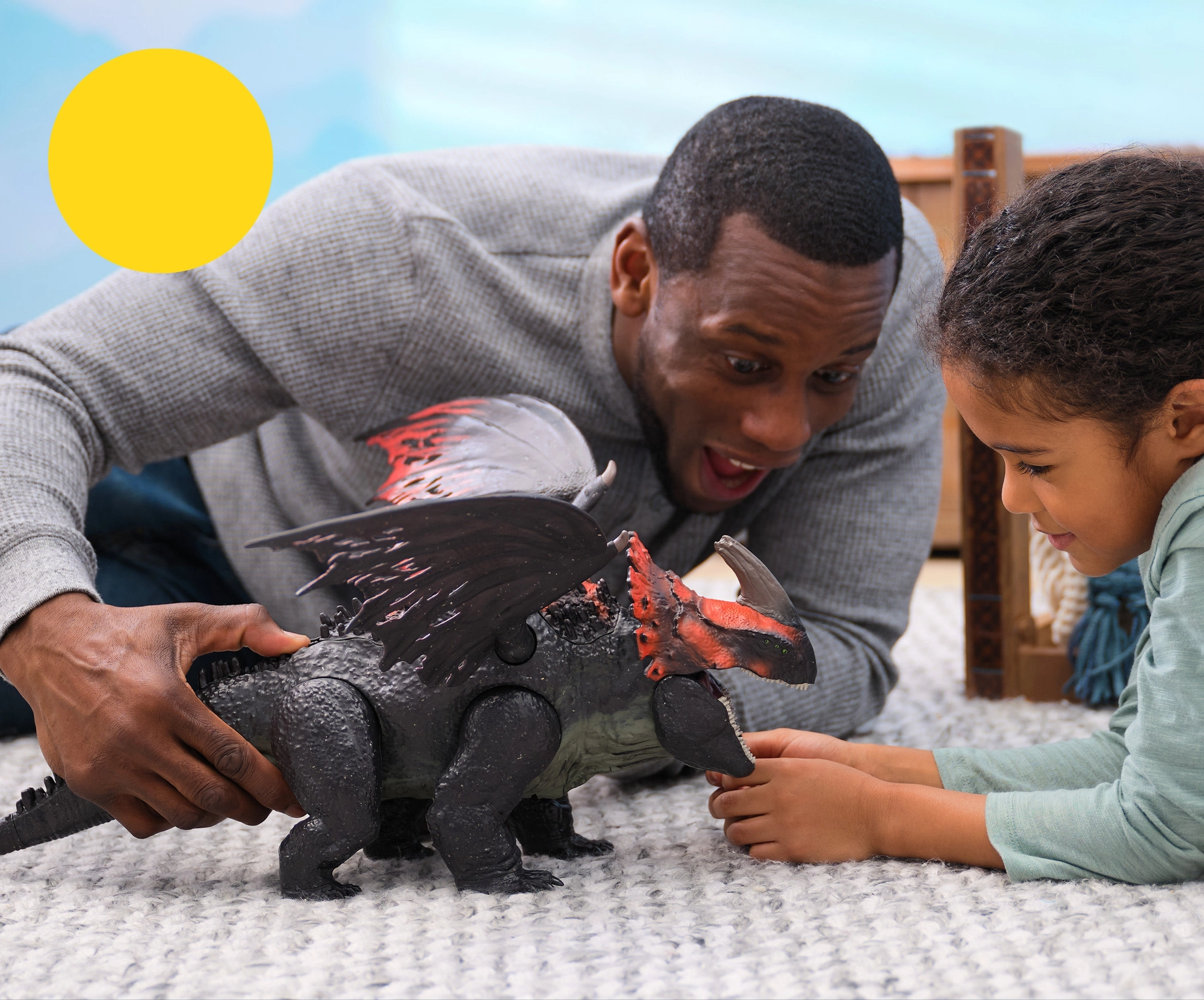 Gracias a sus articulaciones móviles (alas, patas, cabeza) podrás crear poses dinámicas para batallas y aventuras. Al presionar el botón activas los efectos de sonido, que aumentan la tensión y sumergen a los niños en la historia.