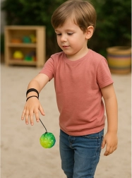 La muñequera elástica ajustable se adapta a la mayoría de las manos y ofrece un uso cómodo y seguro. Es ideal para niños, jóvenes y adultos: como complemento de entrenamiento, para ejercicios en la escuela o en casa, o como actividad divertida en el jardín y el parque. El color de la pelota es siempre vistoso y se envía de forma aleatoria.