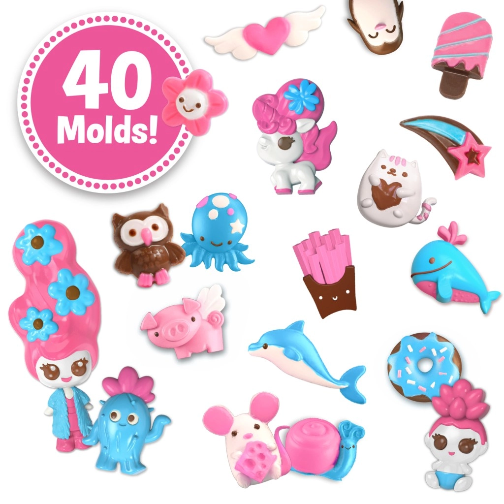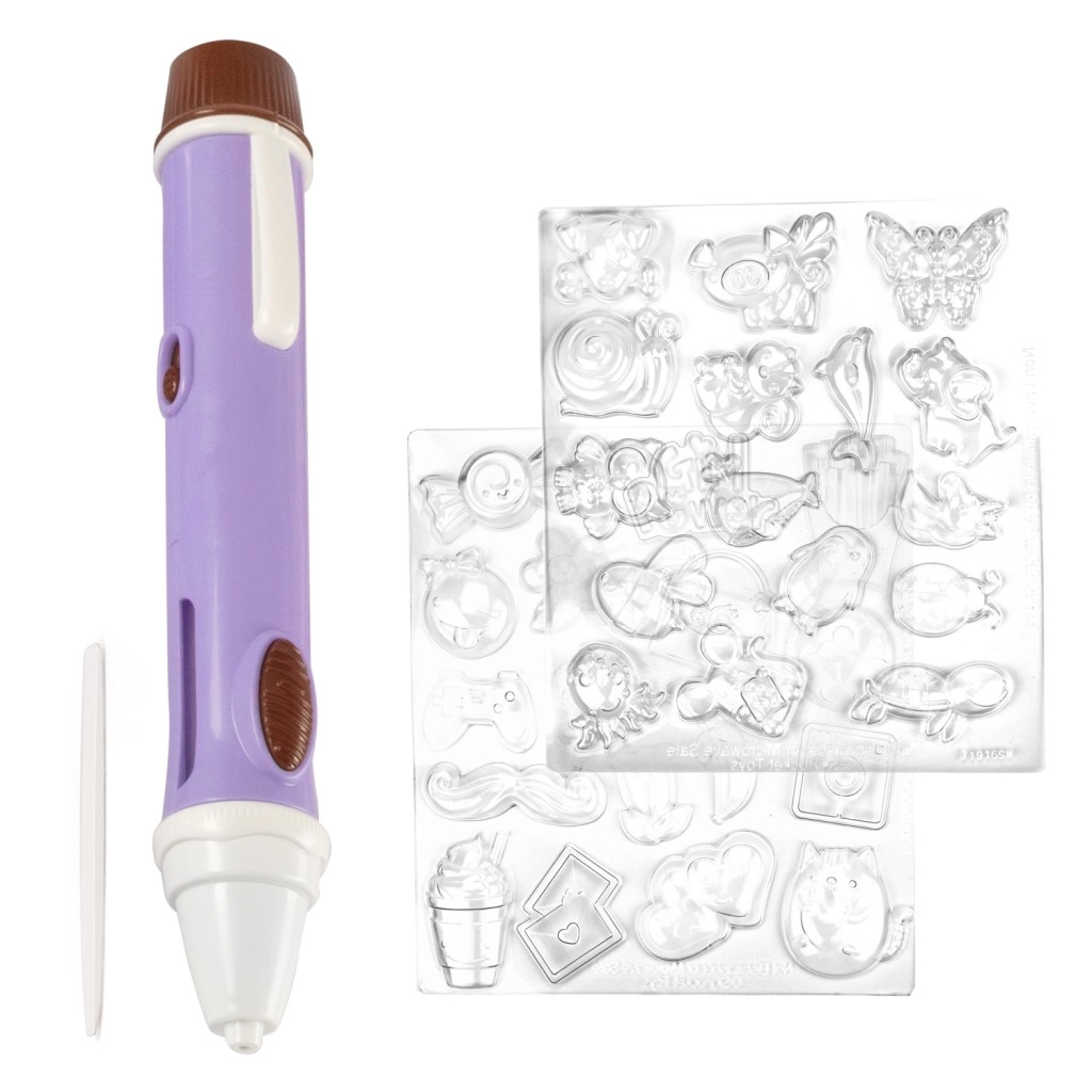 El set incluye dos moldes transparentes con un total de 50 motivos — desde animalitos y corazones hasta flores y decoraciones. Así, los niños crean fácilmente bonitas decoraciones de chocolate y figuritas que encantarán a familiares y amigos. Solo hay que llenar el bolígrafo con chocolate derretido siguiendo las instrucciones, presionar el botón y empezar a crear.
