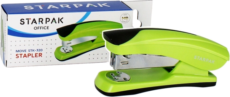 Práctica grapadora verde de 12 × 5 cm, ideal para la escuela y el hogar. Adecuada para niños a partir de 3 años, fácil de usar y compatible con grapas n.º 246–266. Dimensiones compactas, grapado sencillo y diseño resistente para el uso diario.