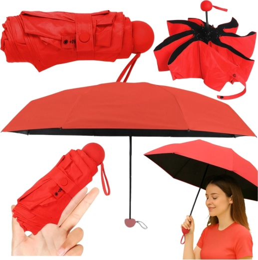 Práctico paraguas de bolsillo de poliéster resistente que te protege tanto en días de lluvia como de sol. La capa especial con UPF 50+ reduce de forma eficaz la penetración de la radiación UV dañina, mientras que la estructura estable y la cómoda empuñadura esférica garantizan un manejo cómodo y fiabilidad diaria.