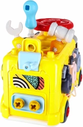 Gracias a la gran cantidad de accesorios y piezas móviles, el juguete fomenta el juego de roles y la imaginación. Cada día se puede inventar una nueva historia: desde un taller de servicio hasta un viaje escolar. No necesita pilas, fabricado en plástico ABS resistente y seguro, con formas suavemente redondeadas adecuadas para manos pequeñas.