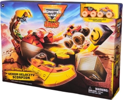 ¡Lleva la adrenalina de la arena de MONSTER JAM directamente a la habitación infantil! El set de escorpión Venom Velocity Scorpion con lanzador de dos etapas, rampa ajustable y dos mini camiones EL TORO LOCO y MAX-D a escala 1:87 ofrece saltos espectaculares, acrobacias y horas de diversión creativa.