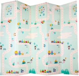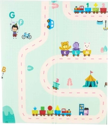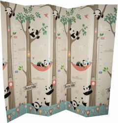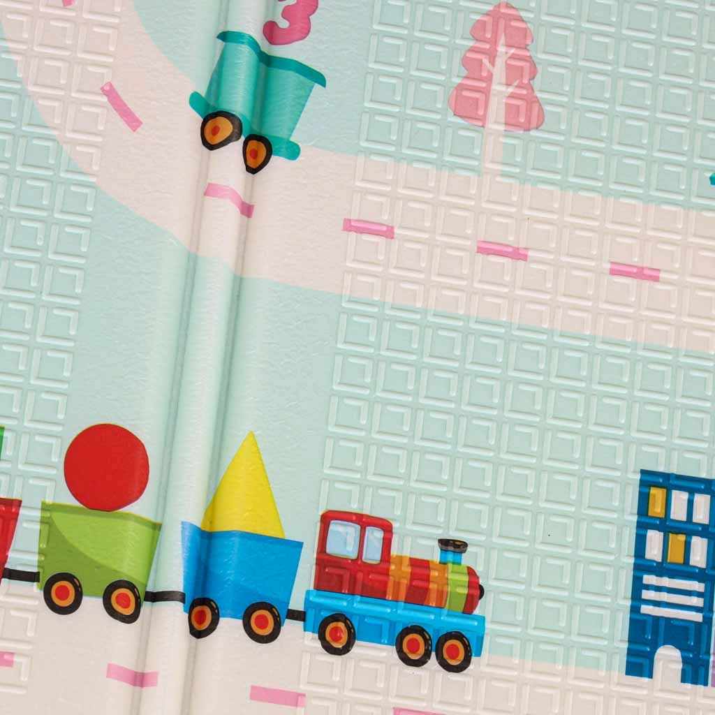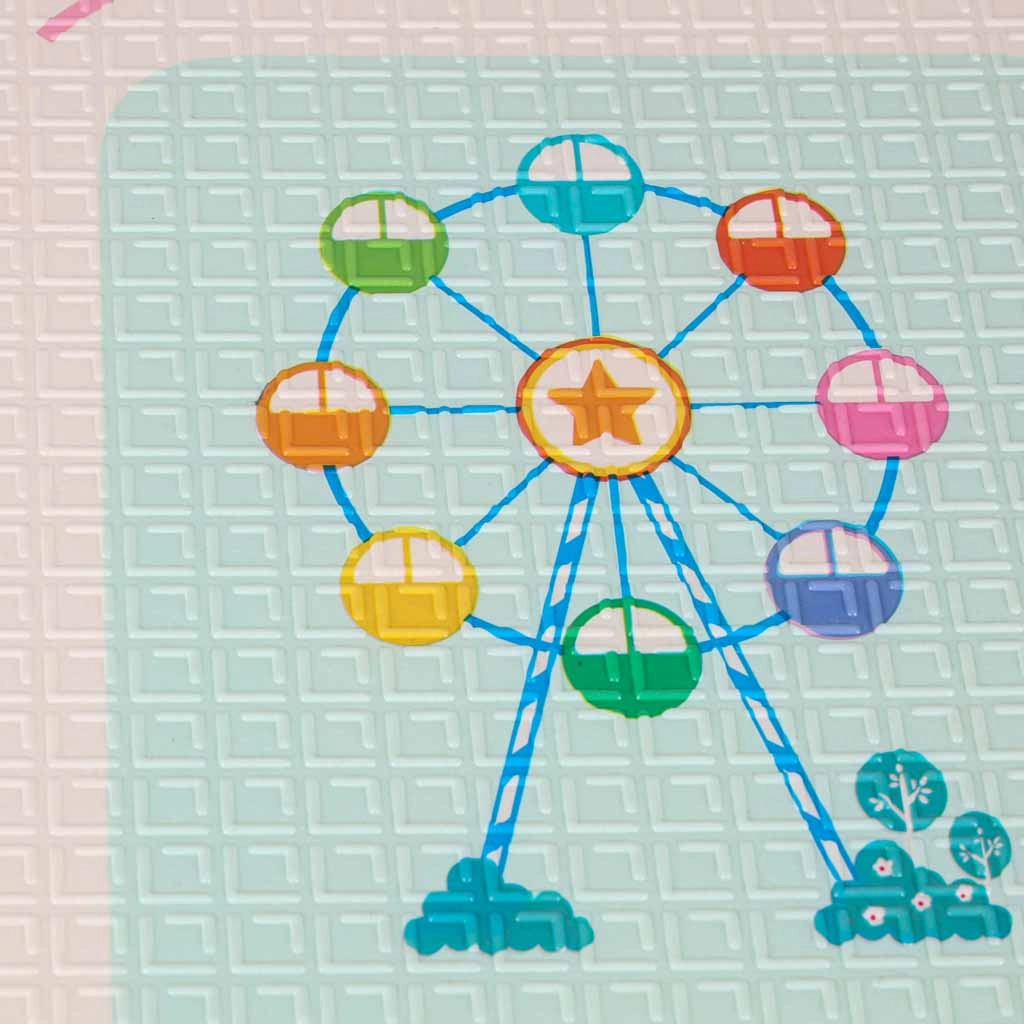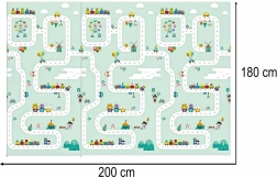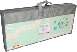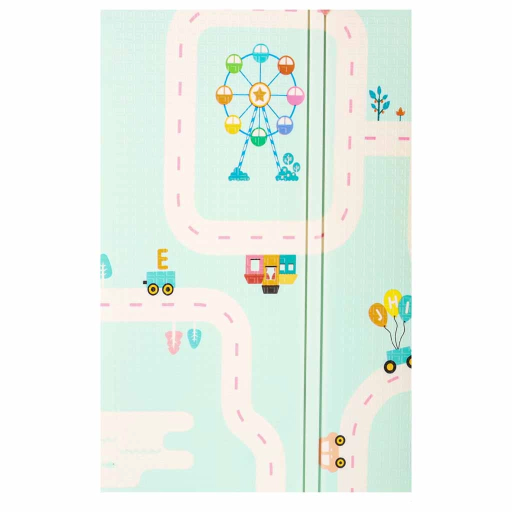 La alfombra de espuma reversible de 180 × 200 × 1 cm crea un espacio seguro y cómodo para jugar, los primeros giros y el gateo. La densa espuma XPE amortigua los impactos, protege del frío del suelo y la textura antideslizante garantiza estabilidad durante el movimiento. Un lado con adorables pandas y el otro con un motivo de carreteras potencian la fantasía y el aprendizaje.