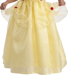 La falda amarilla con varias capas y rositas rojas decorativas crea un look encantador inspirado en Bella.
