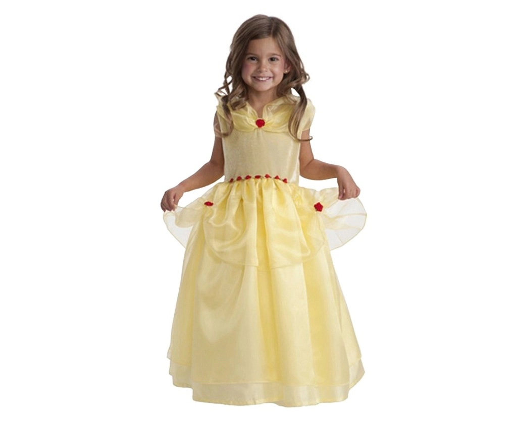 Este encantador disfraz, inspirado en una querida heroína de cuento, transforma a cualquier pequeña en una verdadera princesa. El vestido en un rico tono amarillo cuenta con una falda multicapa para un bonito volumen, sobrecapas de gasa y aplicaciones florales que aportan un aire festivo.