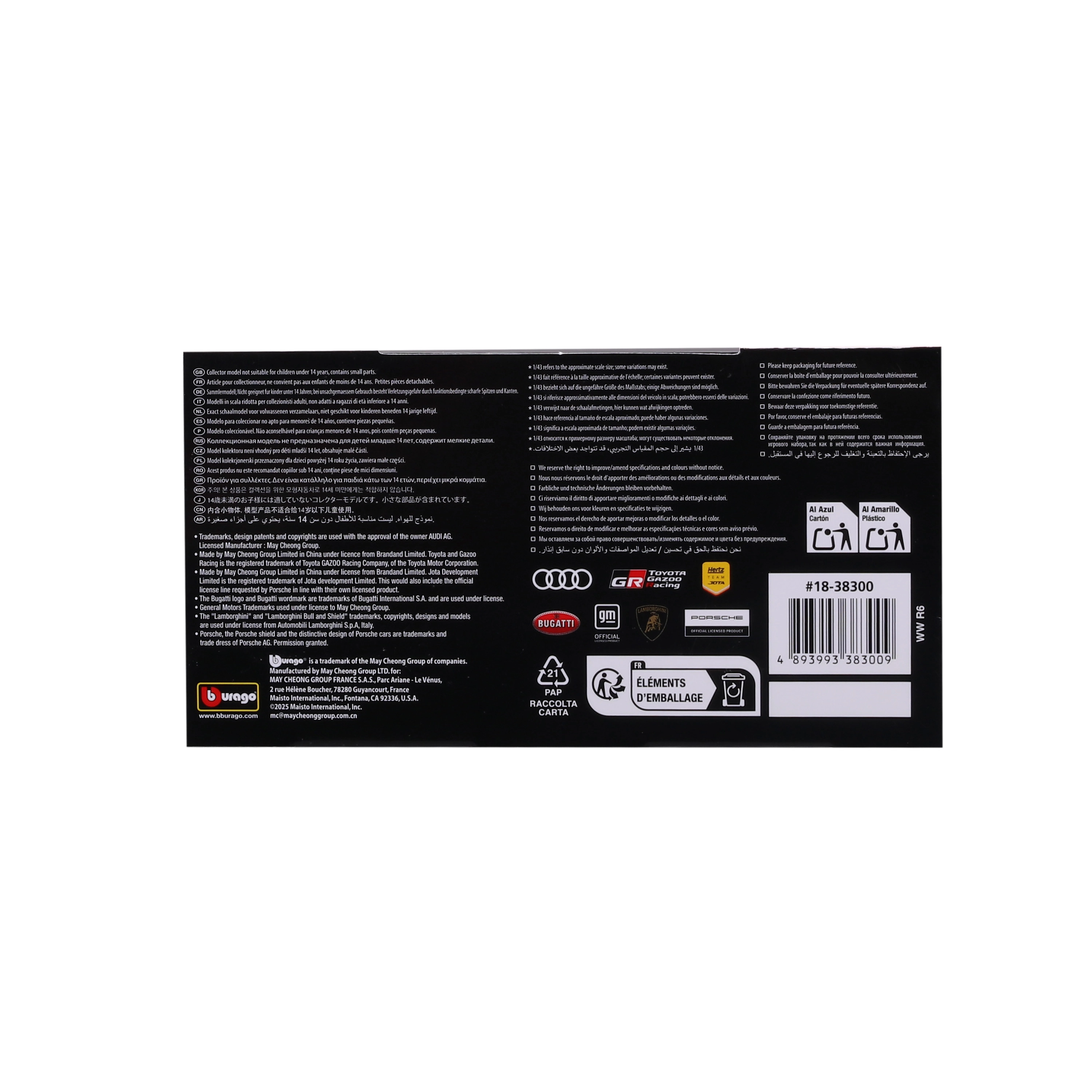 El modelo se entrega en caja de regalo, tiene ruedas libres giratorias y el llamativo diseño de competición TOYOTA GAZOO Racing.