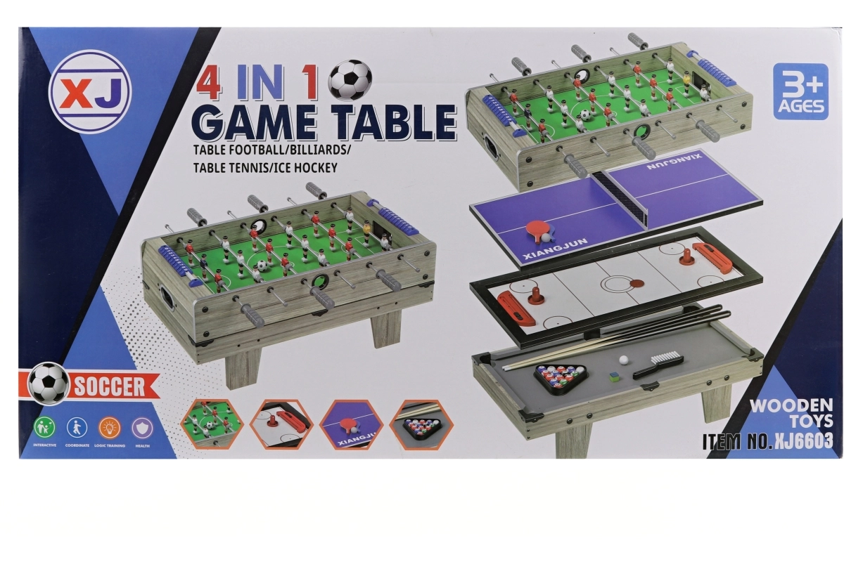 - 4 juegos en 1: futbolín, hockey, ping pong, billar