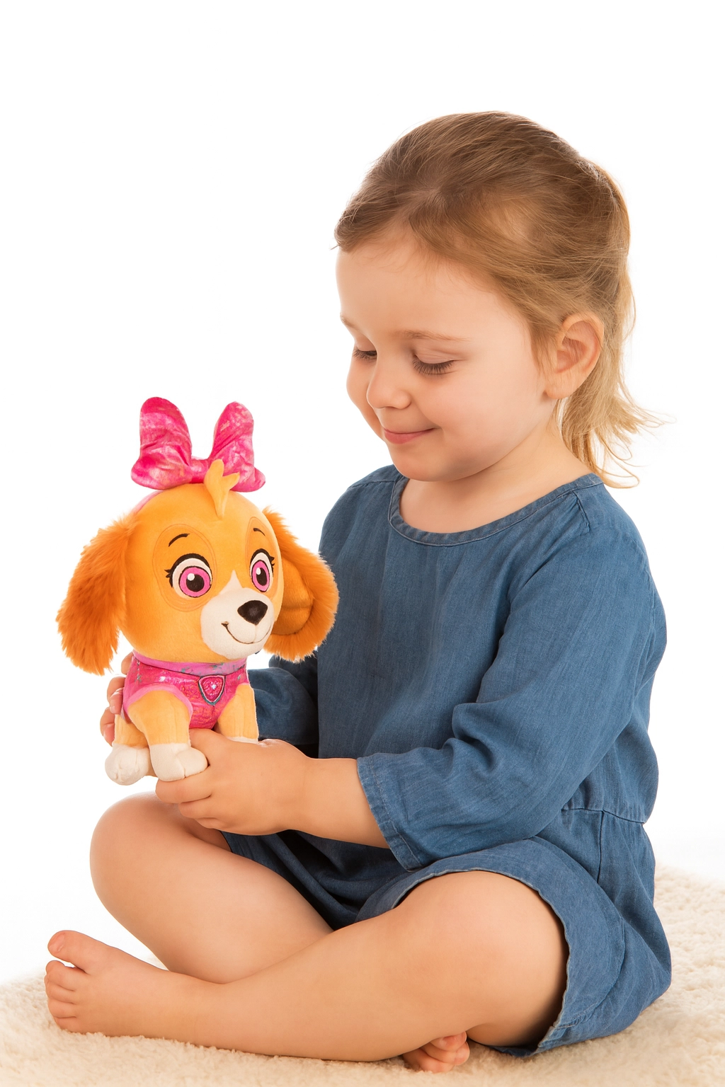 Skye cuenta con característicos detalles en rosa y una posición sentada estable, por lo que también luce genial como decoración de la habitación infantil. Un regalo universal para los amantes de la serie LA PATRULLA CANINA que alegrará durante todo el año.