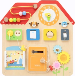 Descubre la magia del juego inteligente con este tablero de madera con forma de casa, que invita a los niños a explorar y practicar habilidades. Elementos bien pensados como deslizadores, cerradura con llave, engranajes o un laberinto con cuentas convierten el tablero en una herramienta versátil para desarrollar la motricidad, la paciencia y la curiosidad.