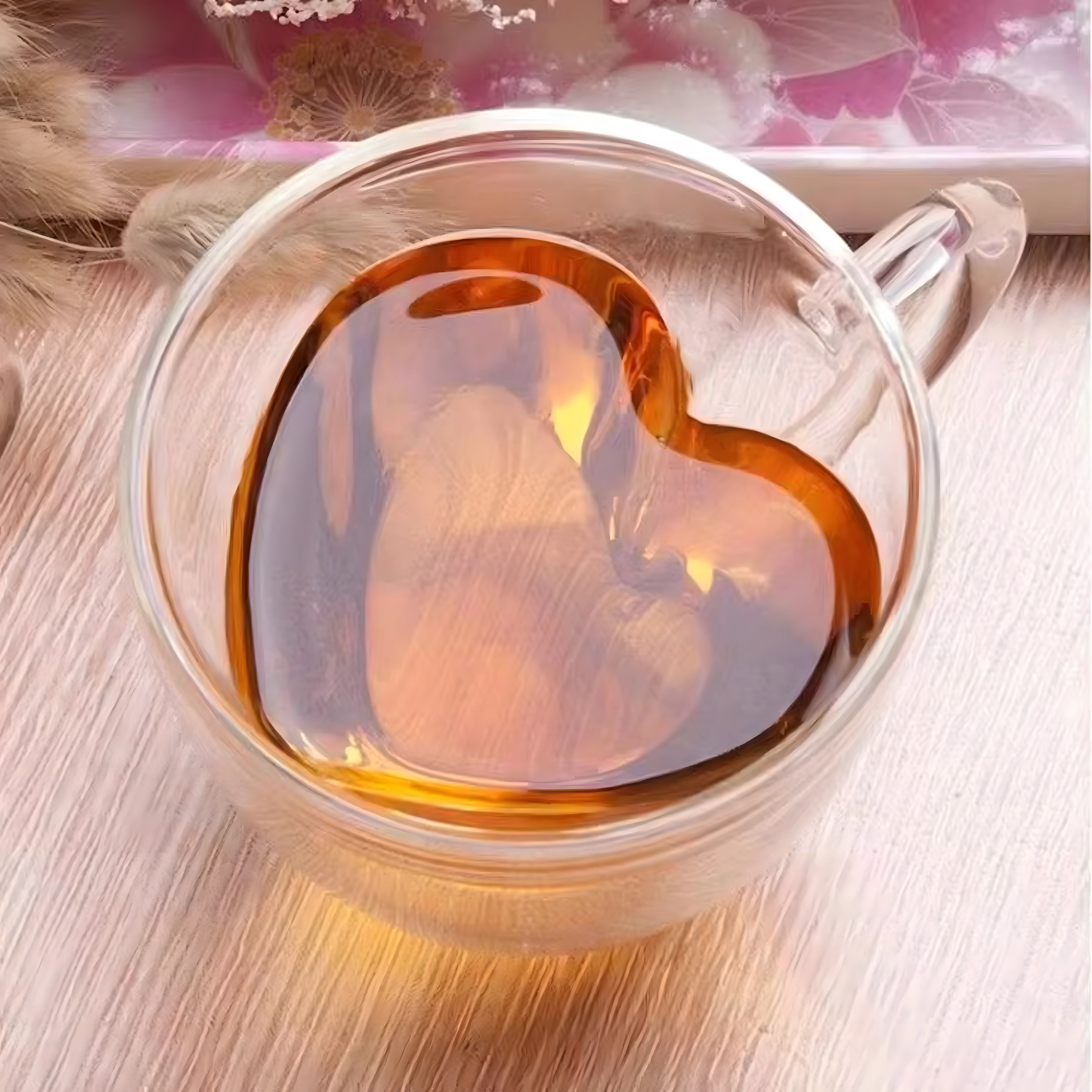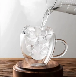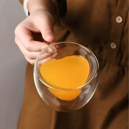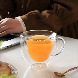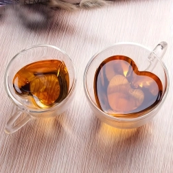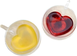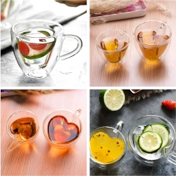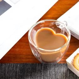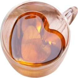 Elegante taza de vidrio con forma de corazón de 250 ml hecha de resistente vidrio de borosilicato con doble pared para una mejor aislación térmica. Ideal para café caliente, té aromático, bebidas frías y postres. Gracias a su construcción aislante, la bebida mantiene la temperatura por más tiempo, mientras que la pared exterior permanece agradablemente fresca para un agarre seguro.