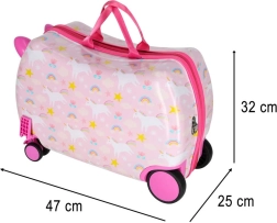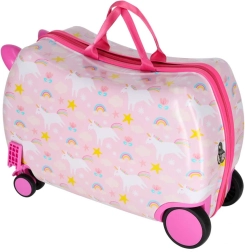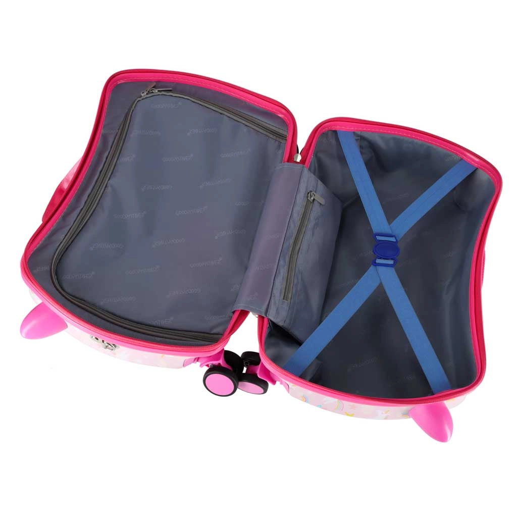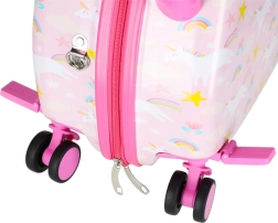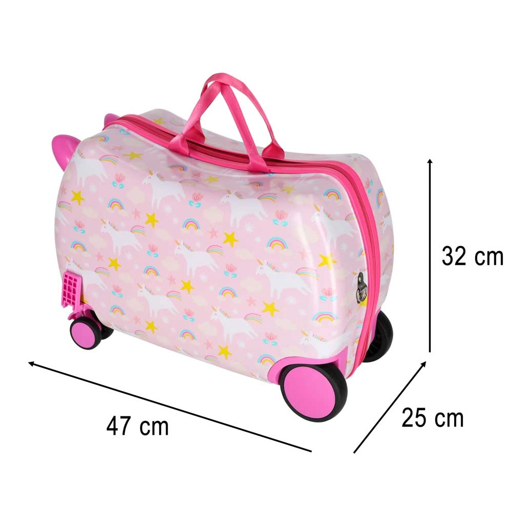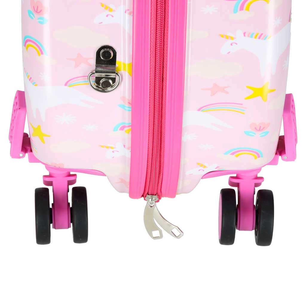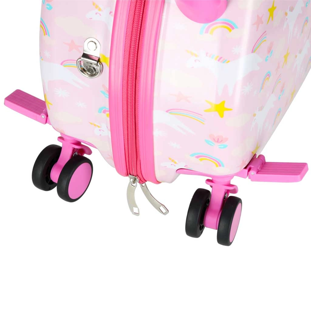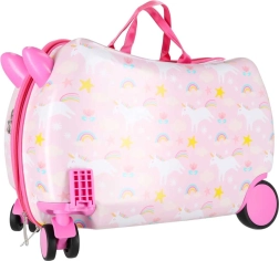 Brinda a los niños un viaje divertido y sin preocupaciones. Esta maleta infantil con ruedas combina comodidad, funcionalidad y un diseño de cuento con unicornios. Gracias a sus medidas de cabina, es ideal como equipaje de mano y su carcasa rígida protege el contenido contra golpes.