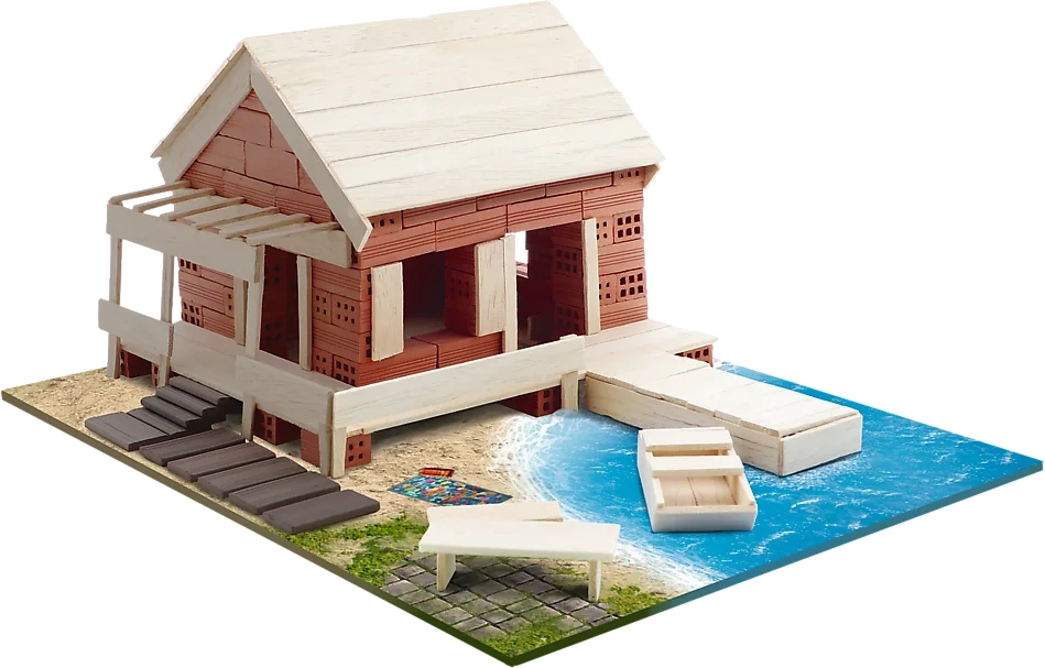 Conviértete en constructor y crea tu propia residencia de verano con auténticos ladrillos de arcilla y madera. El set ofrece una experiencia de construcción realista, desde los cimientos hasta los detalles y decoraciones finales. Puedes seguir las instrucciones ilustradas o dar rienda suelta a tu imaginación y diseñar tu propia solución. Da vida a la construcción terminada con las figuras de papel incluidas.