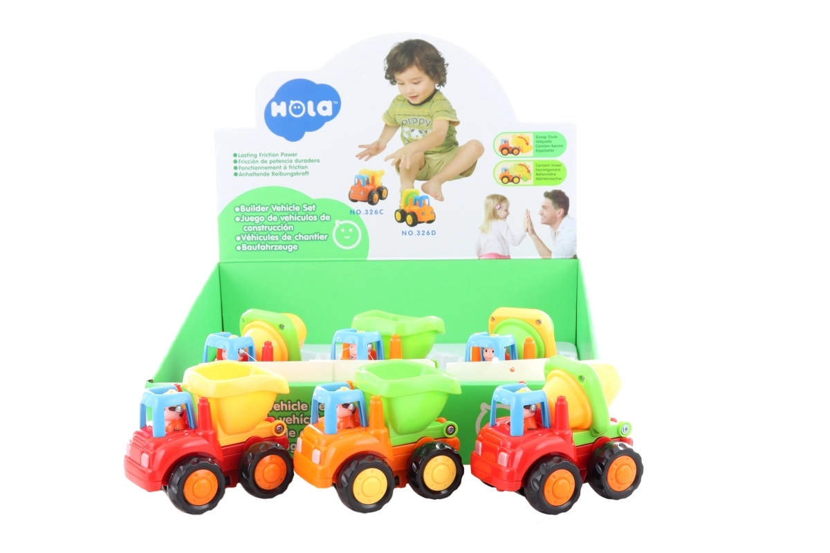 Los cochecitos están hechos de plástico resistente y, gracias a sus colores y formas, invitan a jugar en casa o de viaje. Jugar con cochecitos desarrolla las habilidades motoras, potencia la imaginación y enseña a los niños el principio de causa y efecto.