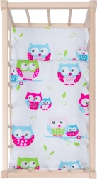 - cuna de madera, colchón, ropa de cama reversible de 3 piezas (almohada, edredón)
