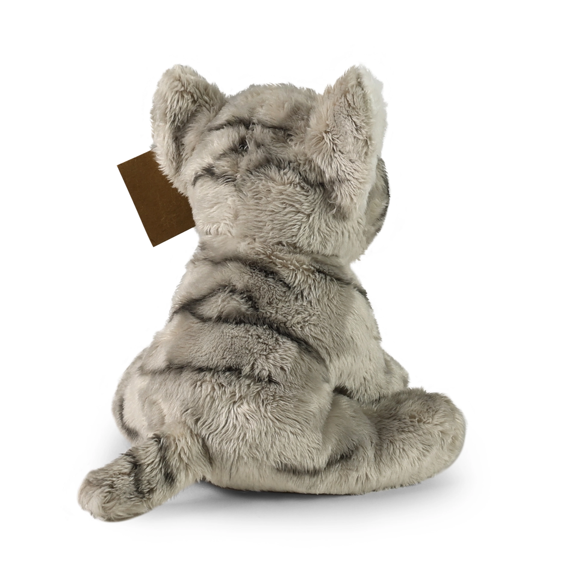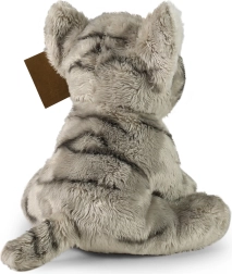 Este gatito gris sentado es el compañero ideal para la cuna y para los viajes. Destaca por su superficie extraordinariamente suave, aspecto realista y detalles cuidados gracias al trabajo manual. La marca RAPPA hace hincapié en la sostenibilidad y en el uso mínimo de plásticos, por lo que el relleno está hecho de botellas PET recicladas y aun así se mantiene suave y agradable al tacto.