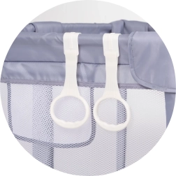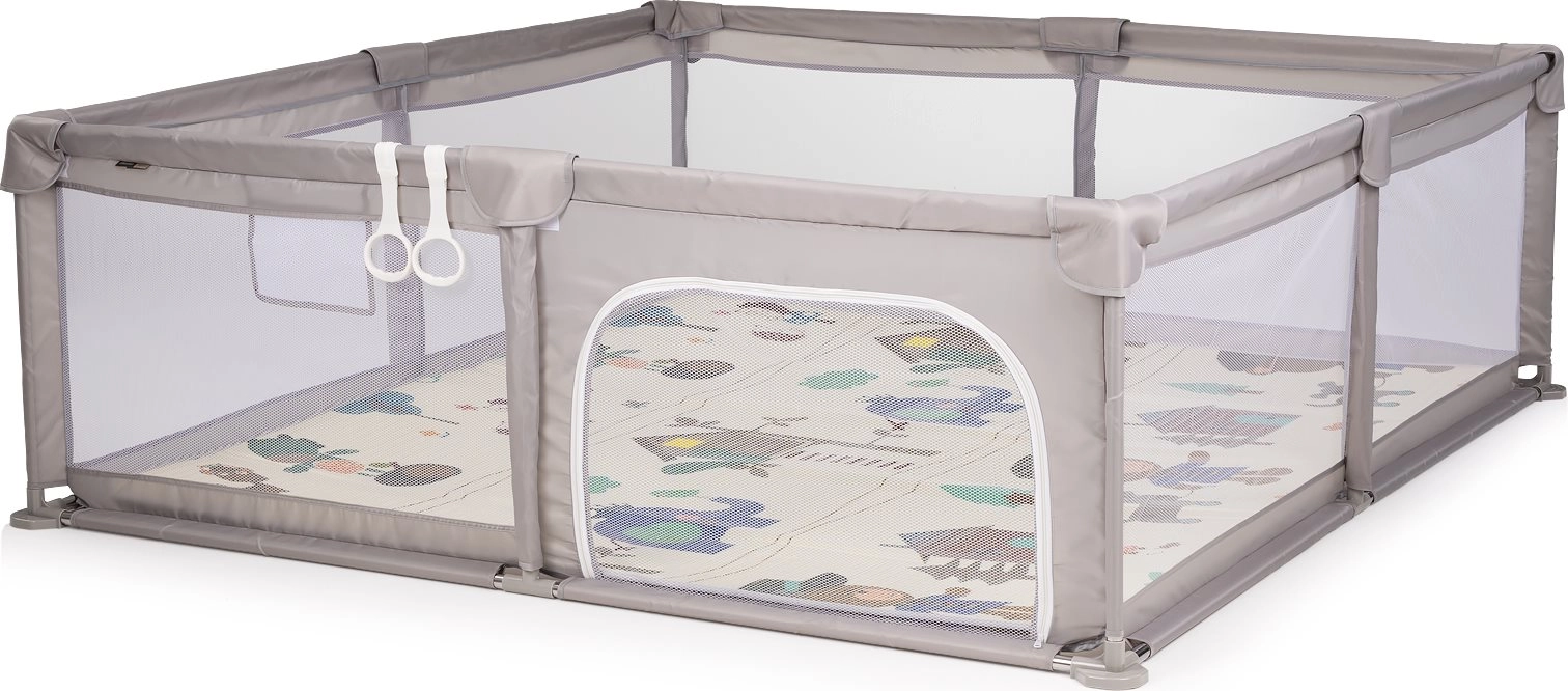 La práctica puerta lateral con cremallera permite al pequeño entrar y salir con seguridad, fomentando su autonomía y desarrollo motor. La estructura reforzada con acolchado suave aporta mayor protección y comodidad. El paquete incluye dos anillas de sujeción, una ayuda perfecta para practicar ponerse de pie y el equilibrio.