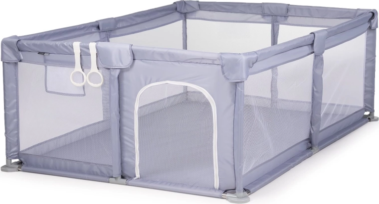 El armazón reforzado y estable, con esquinas redondeadas y acolchado suave, aumenta la seguridad y la comodidad. El parque es ligero, fácil de montar y sencillo de mantener: ideal para el salón y para viajar. El paquete incluye también 2 anillas de sujeción que ayudan al niño a impulsarse y entrenar el ponerse de pie.