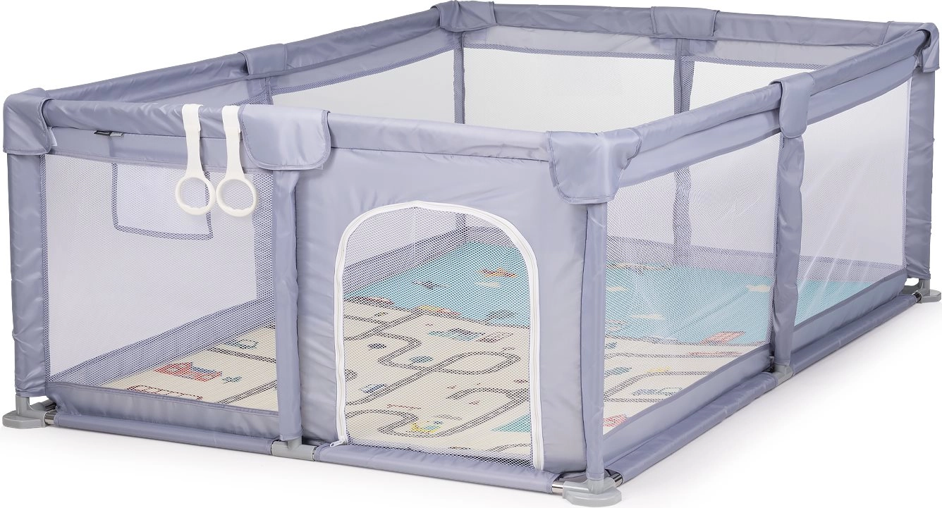 La gran superficie de juego permite a los niños gatear, jugar y explorar libremente. Los paneles de malla transpirables garantizan una excelente visibilidad y circulación del aire.