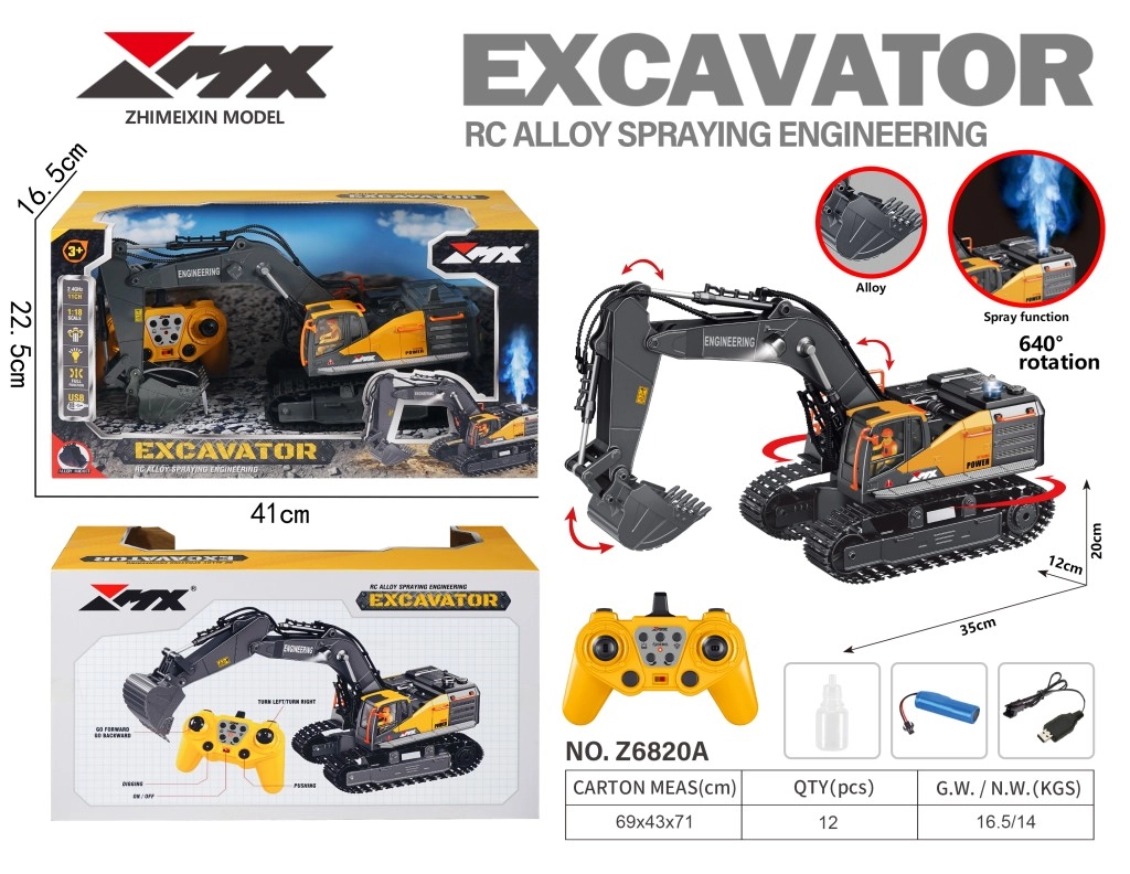 El control a 2.4 GHz con alcance de hasta 30 m ofrece una conducción fluida sin interferencias. La torre gira hasta 640°, para simular con precisión trabajos de construcción reales. La excavadora ofrece efectos de luz y sonido y un atractivo efecto de vapor (spray) que intensifica la experiencia de conducción y excavación.