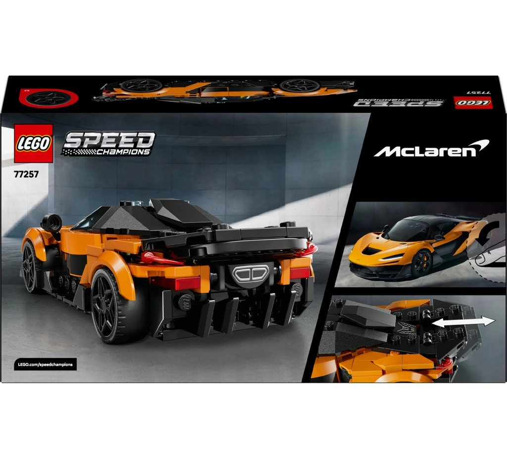 Disfruta de la combinación de diseño realista y juego emocionante con el set LEGO Speed Champions McLaren W1. El esquema de colores en naranja y negro, los neumáticos de perfil bajo y la carrocería detallada llaman la atención a primera vista, tanto si lo expones como si te lanzas a un circuito de carreras imaginario. Gracias a la app LEGO Builder, puedes acercar y girar el modelo en 3D y seguir instrucciones claras paso a paso.