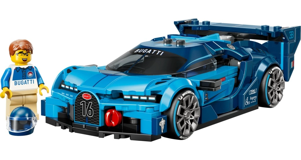 Vive la adrenalina de los campeonatos con el modelo BUGATTI Vision GT, que impresiona por la forma exacta de su carrocería, la parrilla delantera en forma de herradura con el número 16, ocho faros, aleta en el techo y destacado alerón trasero. Los neumáticos anchos con estampado aportan un aspecto de competición realista, y la minifigura del piloto con atuendo con el logotipo de BUGATTI encaja cómodamente en la cabina.